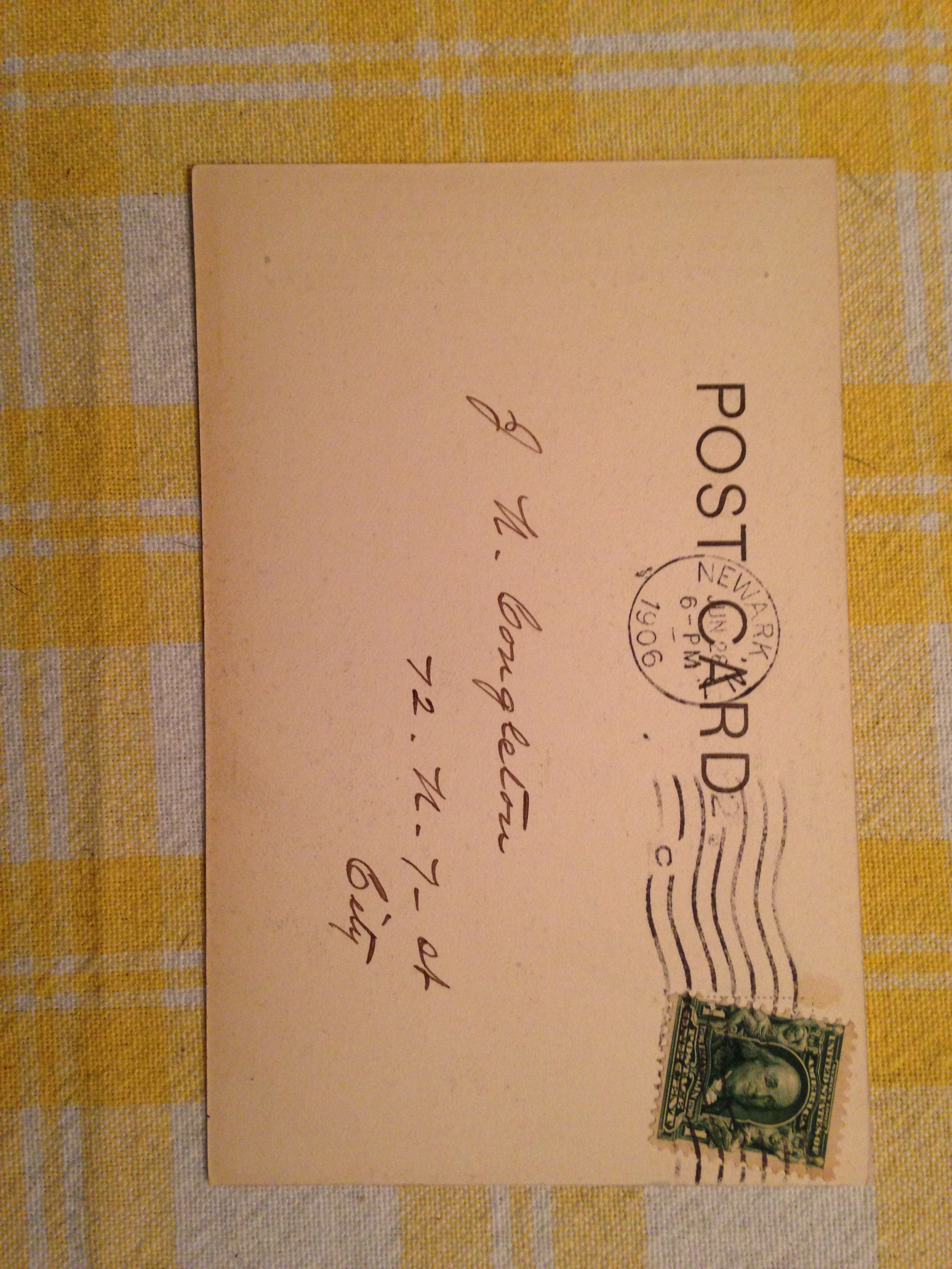 The City Trust Company of Newark was very proud of their vault, in fact, they put it on a post card to solicit business. This card was addressed to J.T. Congleton of North 7th Street. Jerome T. Congleton (1876-1936) was a lawyer and banker. He joined the the firm of Congleton, Stallman & Hoover in 1917 and in 1933 he became the president of the United States Trust Company of Newark . He was both a lawyer and banker until he died of a heart attack while driving in December 1936.