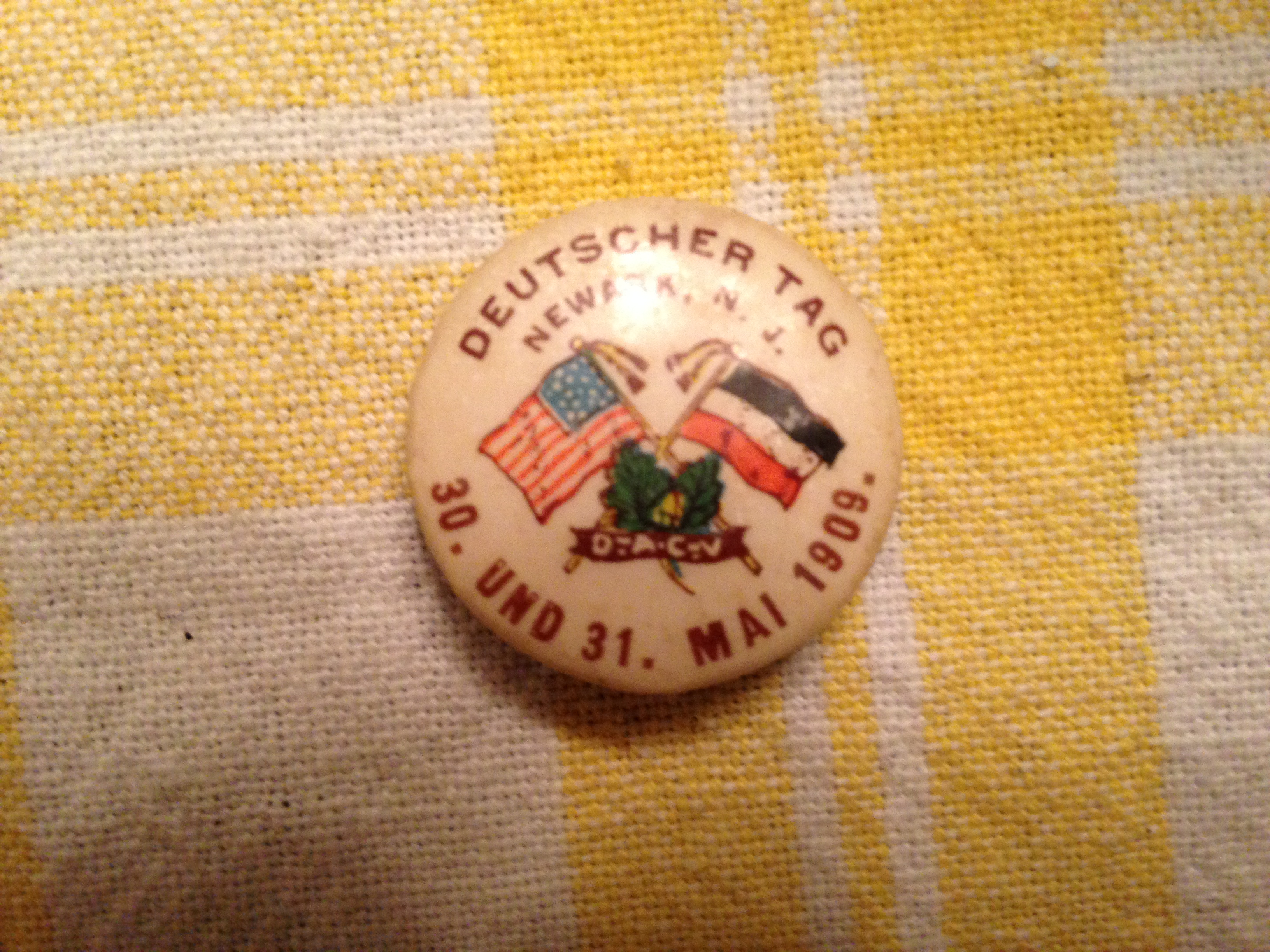 Deutscher Tag means German Day. From the mid 19th century through the first part of the 20th century German immigrants played a major role in the City of Newark. The former Queen of Angels Church began as St. Peter’s German Roman Catholic Church. The famous Krueger Brewery was founded by Gottfried Krueger a German immigrant. The Germans were so numerous that Springfield Avenue was referred to as “German Hill”. The two buttons included in this post were from German Day in 1902 and 1909, well before the First World War. The 1902 button was presented by the New Jersey Freie Zeitung , a German language newspaper published in Newark from 1858-1954. By the 1940’s many ethnic Germans had already left Newark for other locales.