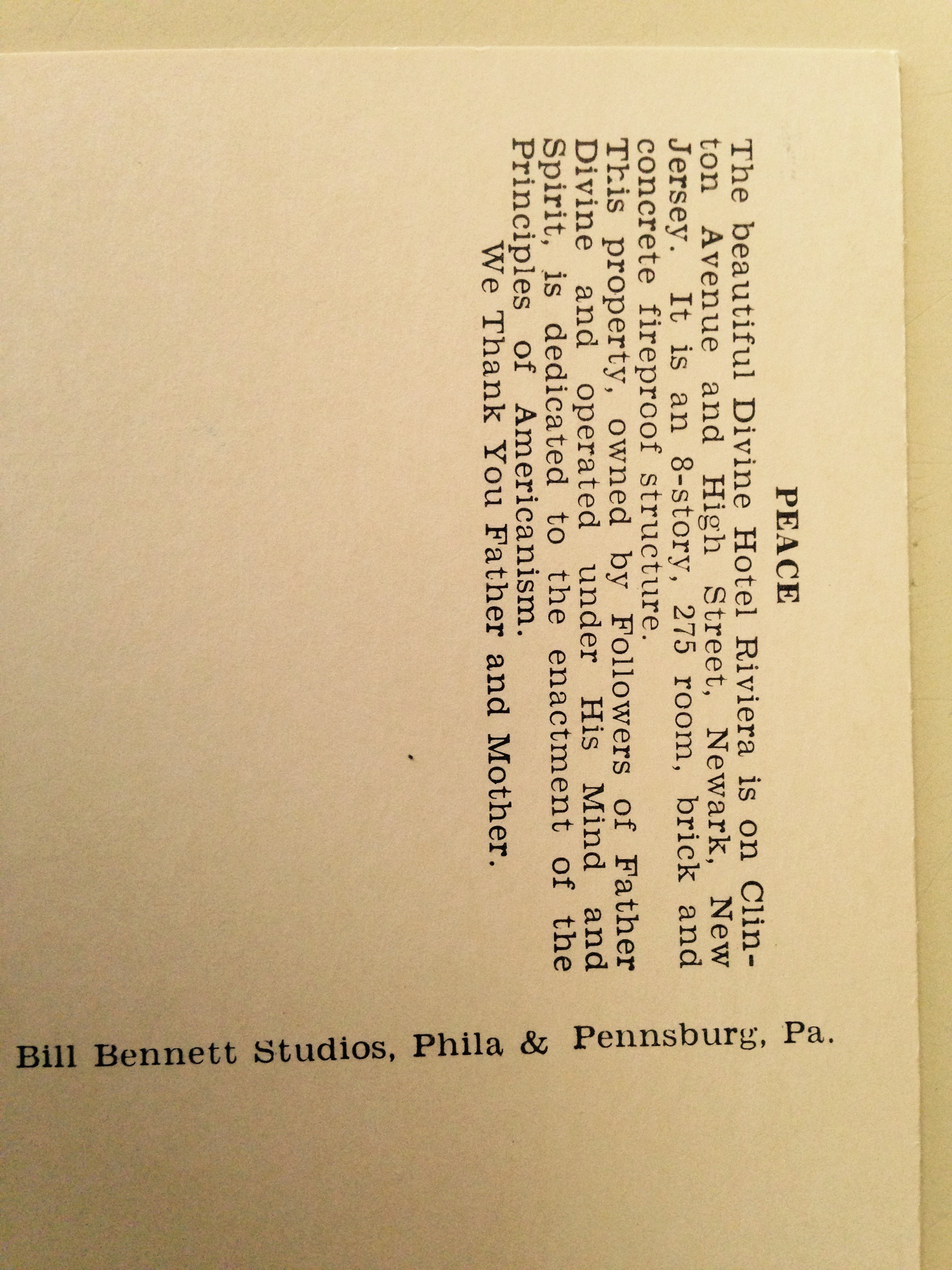 The two post cards in this blog depict the hotel in the 1920”s and the other after Father Devine purchased it.