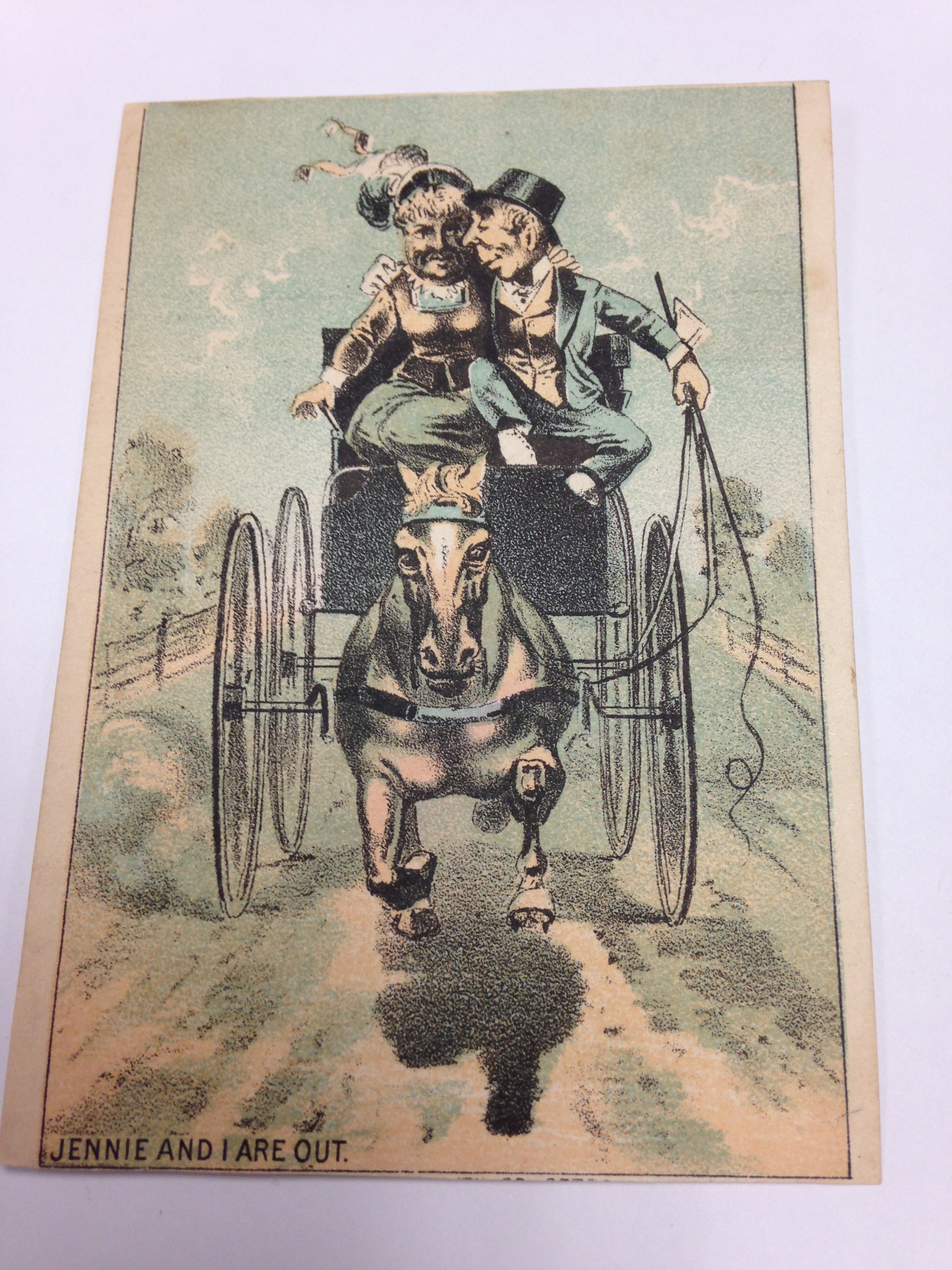 This late Victorian trade card advertises a place that boarded horses as well as renting them out for hire. This establishment was located near the corner of Halsey Street and the Morris Canal, now Raymond Boulevard. These stables were located all over the city at one time and now there isn’t one. The arrival of the automobile completely wiped out this type of business. Much like CD’s replaced vinyl records.
