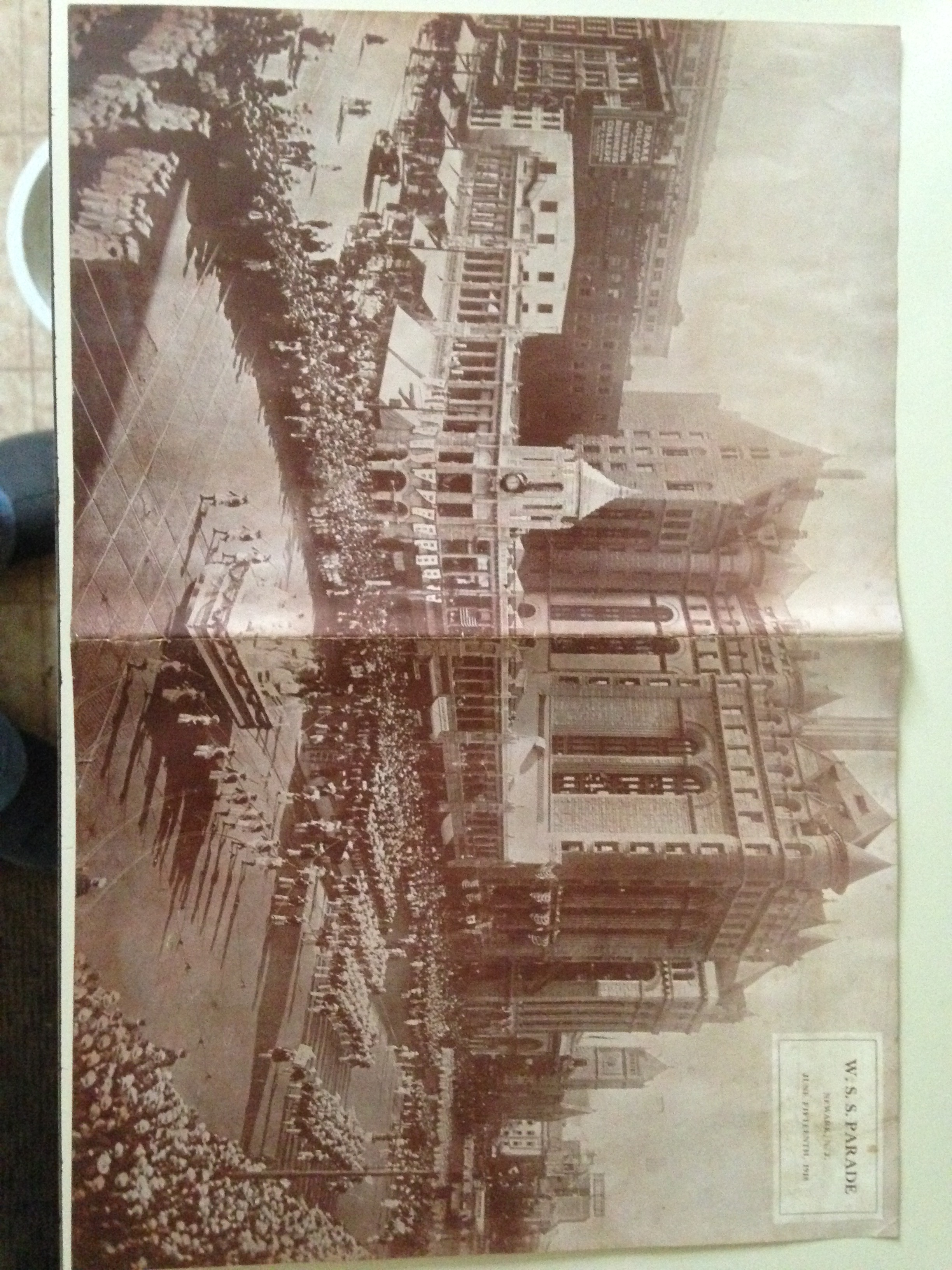 The parade followed a two mile line of march down Broad Street past the Prudential Home Office and past the “Four Corners” and the central business district. There were various military bands, including the Naval Band from the Pelham Bay Training Station. The band had eighty five members, clad in blue jackets. Among their musical selections were “Over There” and the French national anthem “La Marseillaise”.