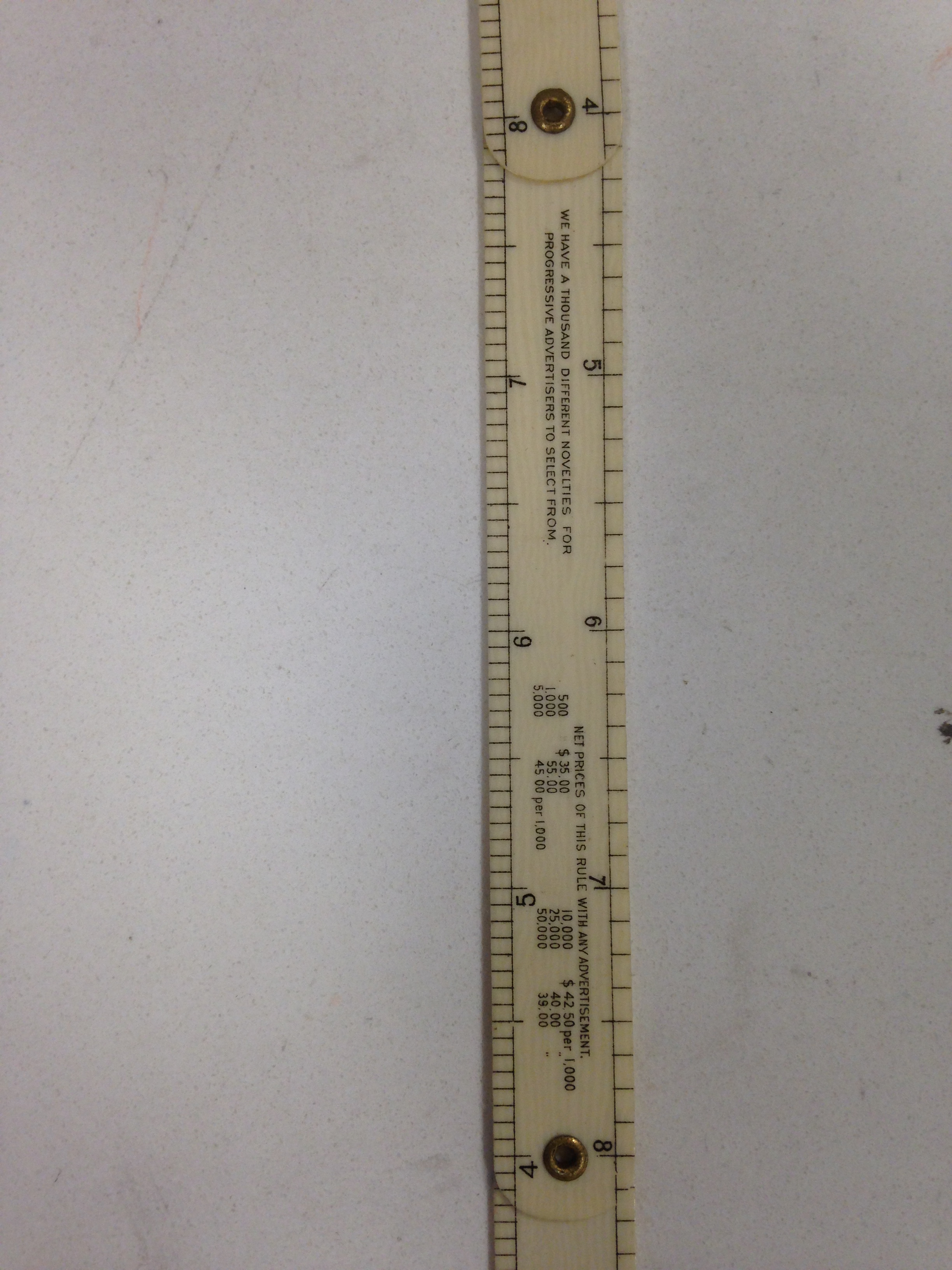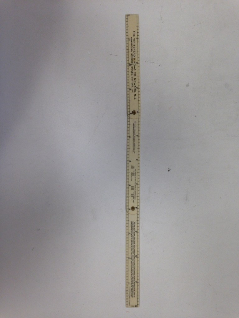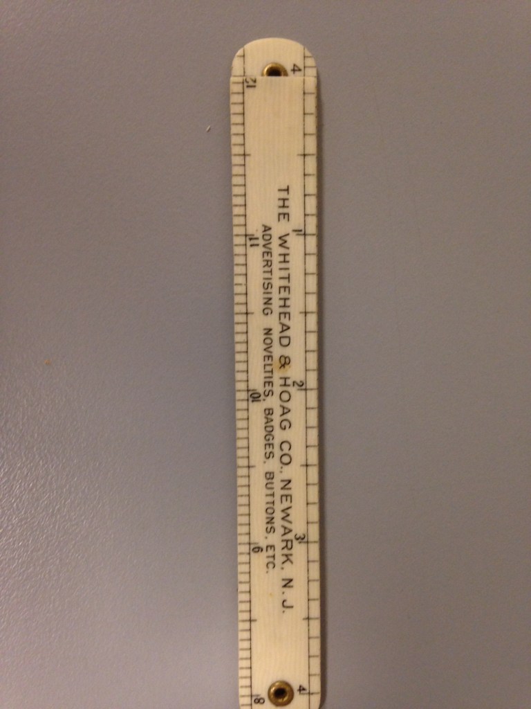 A practical giveaway item from Whitehead & Hoag – Newark’s preeminent manufacturer of novelties. The tri-fold ruler has the Whitehead & Hoag name and address in the first section, pricing in the second section and their sales pitch in the third section. As was their custom, the Whitehead & Hoag name and city of origin are prominently displayed. In fact, if you purchased a novelty from W&H and you refused to allow them to place their name on it, you paid a steep premium !!
