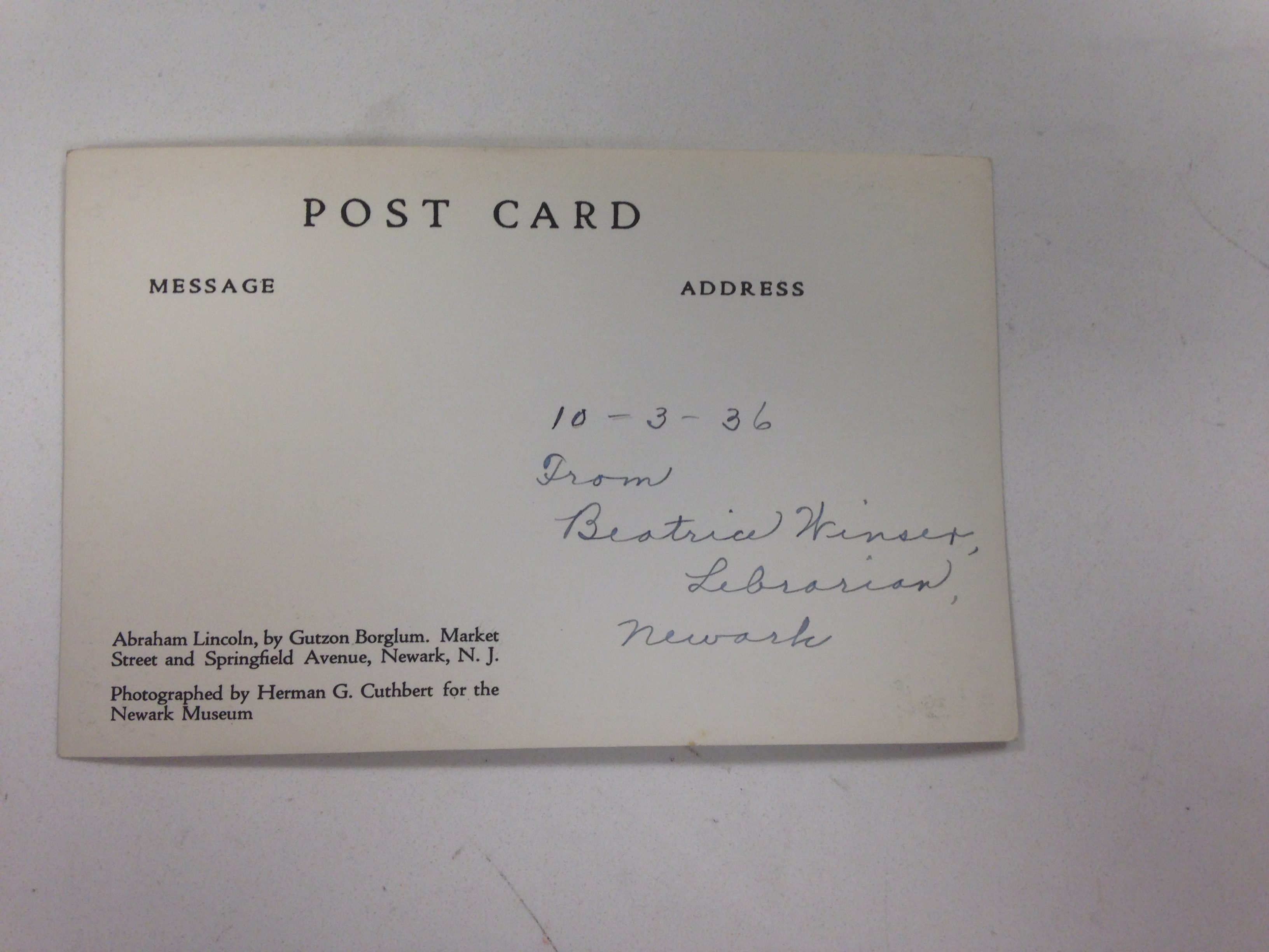 The sender of these post cards, Beatrice Winser , is not a familiar name to present day Newarkers and I hope this post will draw some attention to her many achievements.