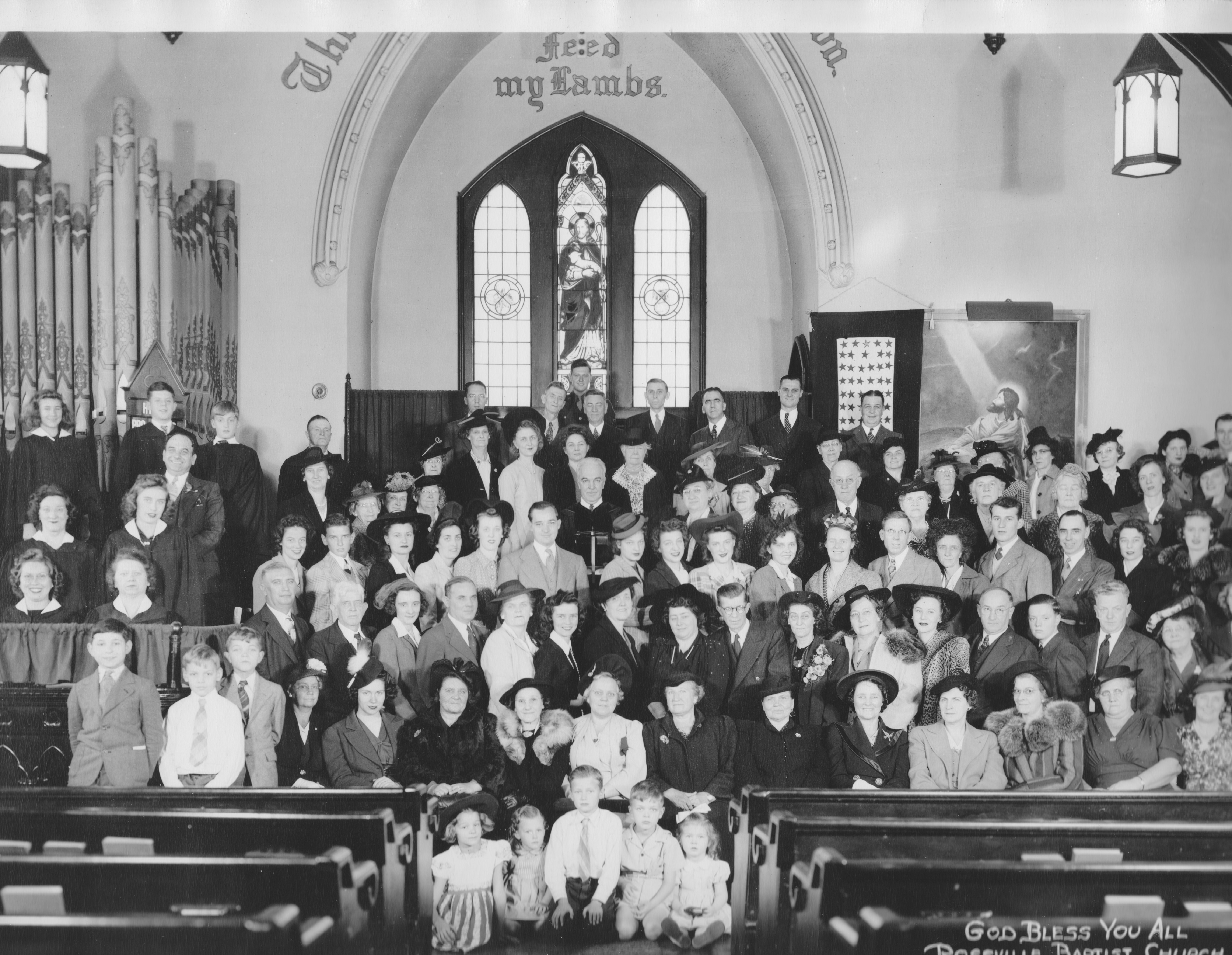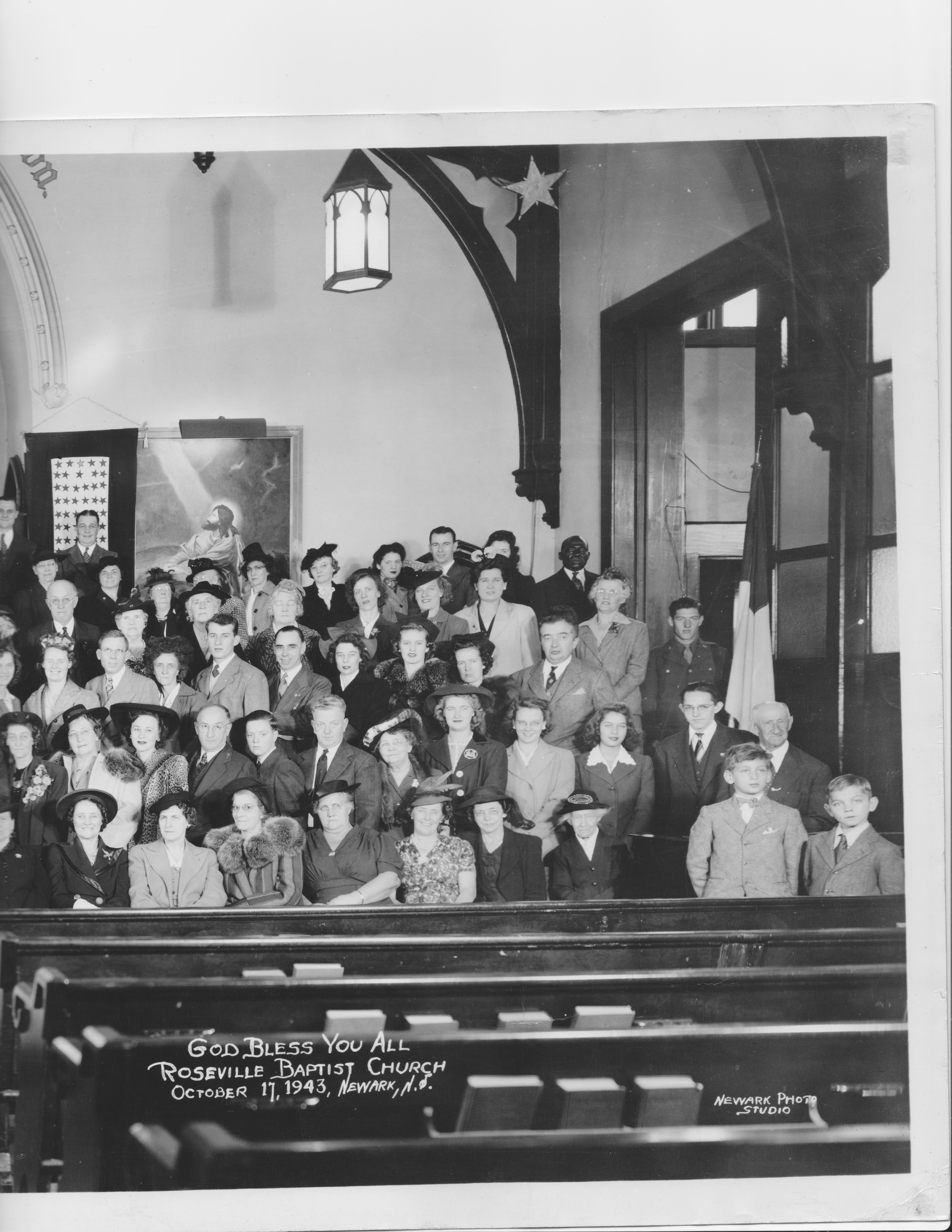 Roseville Baptist Church was affiliated with the New Jersey Baptist Convention and the American Baptist Convention( formerly the Northern Baptist Convention until the Civil War caused the separation of the Southern Baptist Convention). Our membership was approximately 200-250. Regular included Sunday school at 9:45a.m. and worship services at 11a.m. For many years the Church held weekly prayer meetings on Tuesday evenings which my father regularly attended. The Church also held an annual bazaar and dinner for the public, I believe in the fall. My Dad served on the Board of Deacons, and my Mother, on the Board of Deaconesses, both for many years. Both parents were Sunday school teachers, my Dad with an adult class and Mom with a teenage class. Mom was also the Sunday school’s Financial Secretary for many years, and I remember her emptying envelopes onto the card table on Sunday afternoons and counting the money, so much for the Sunday school and so much for the missions.”